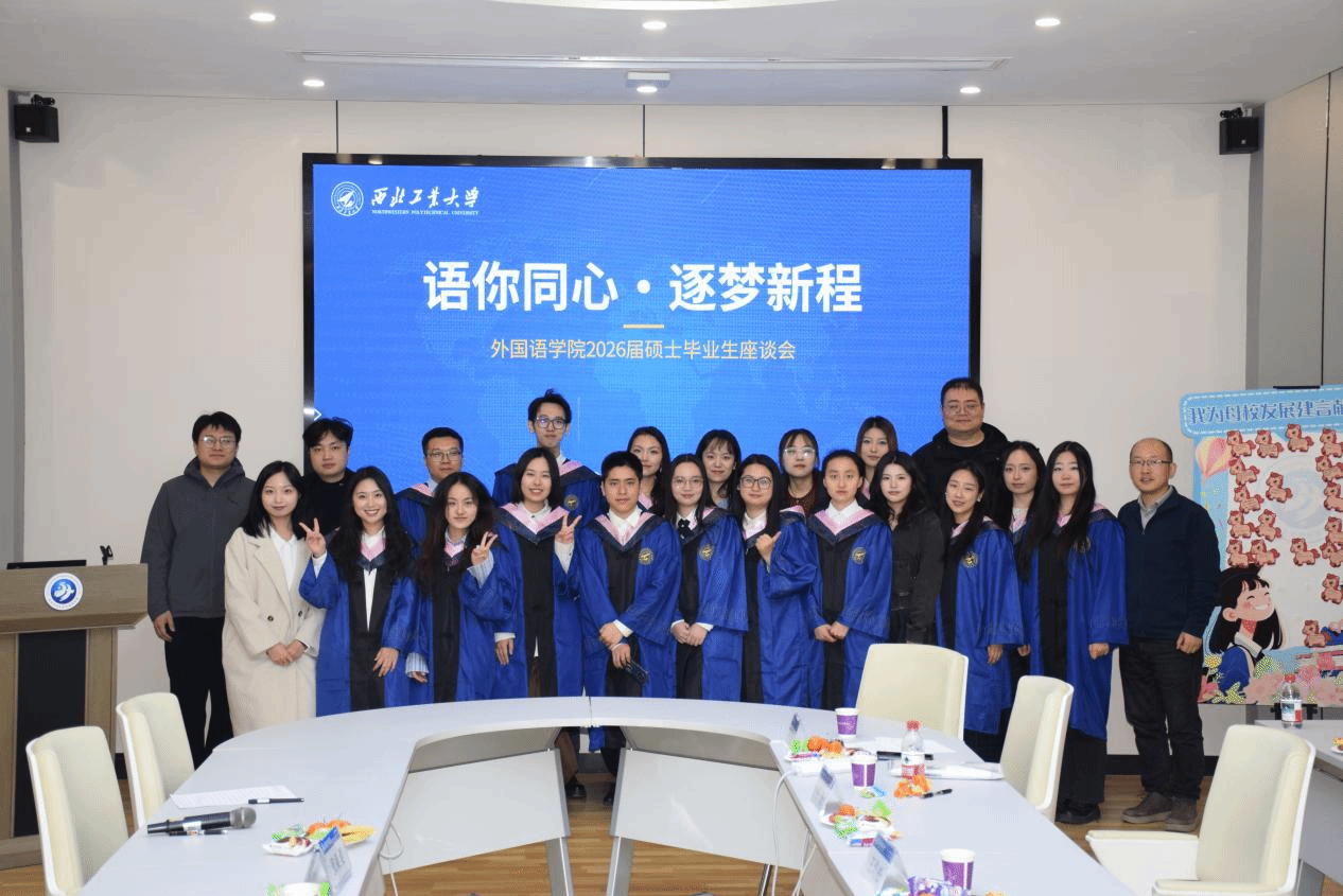 此次毕业座谈会为2026届硕士毕业生的校园时光画上了圆满句号,也为学子们奔赴人生新征程注入了温暖力量。未来,学院将继续坚守育人初心,搭建毕业生与母校、老师的沟通桥梁,持续传递关怀与期许。愿全体毕业生带着学院的祝福,以青春之姿奔赴山海,以专业之力赋能成长,在各行各业坚守外语人的使命与担当,逐梦新程、不负韶华。(文稿:杨子涵;图片:郝子赫;审核:张桑桑)