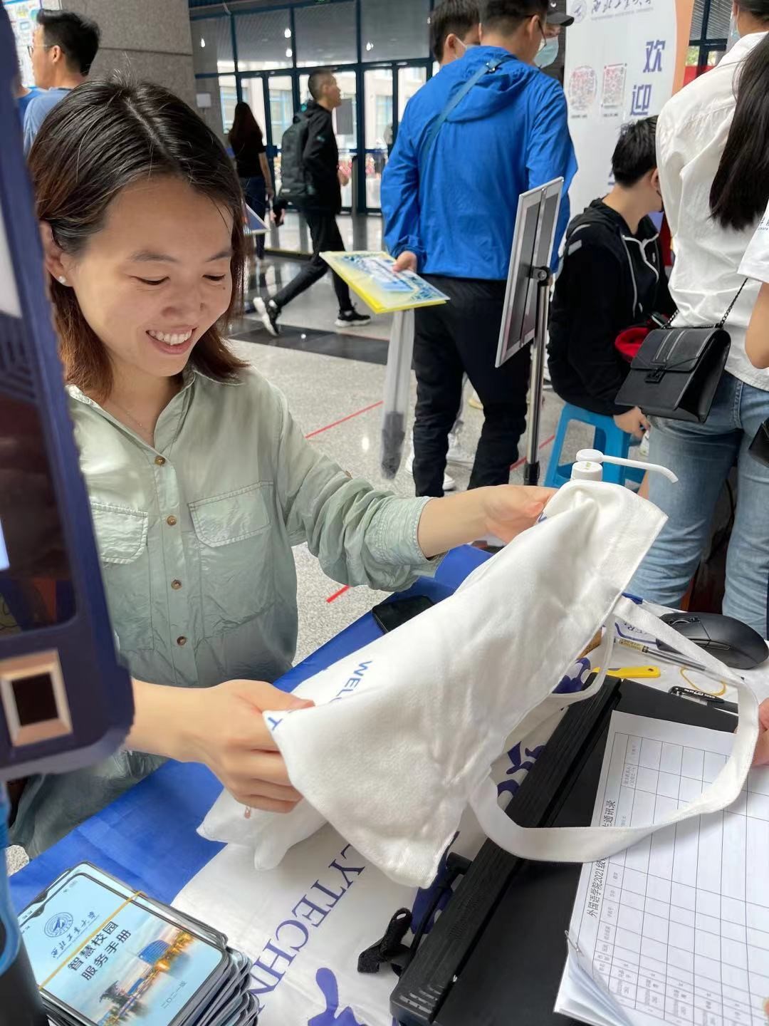 定制帆布袋一个,印制西工大logo的口罩7片,入学指南一份和经典书籍一本,让每一位踏入博彩网站大全