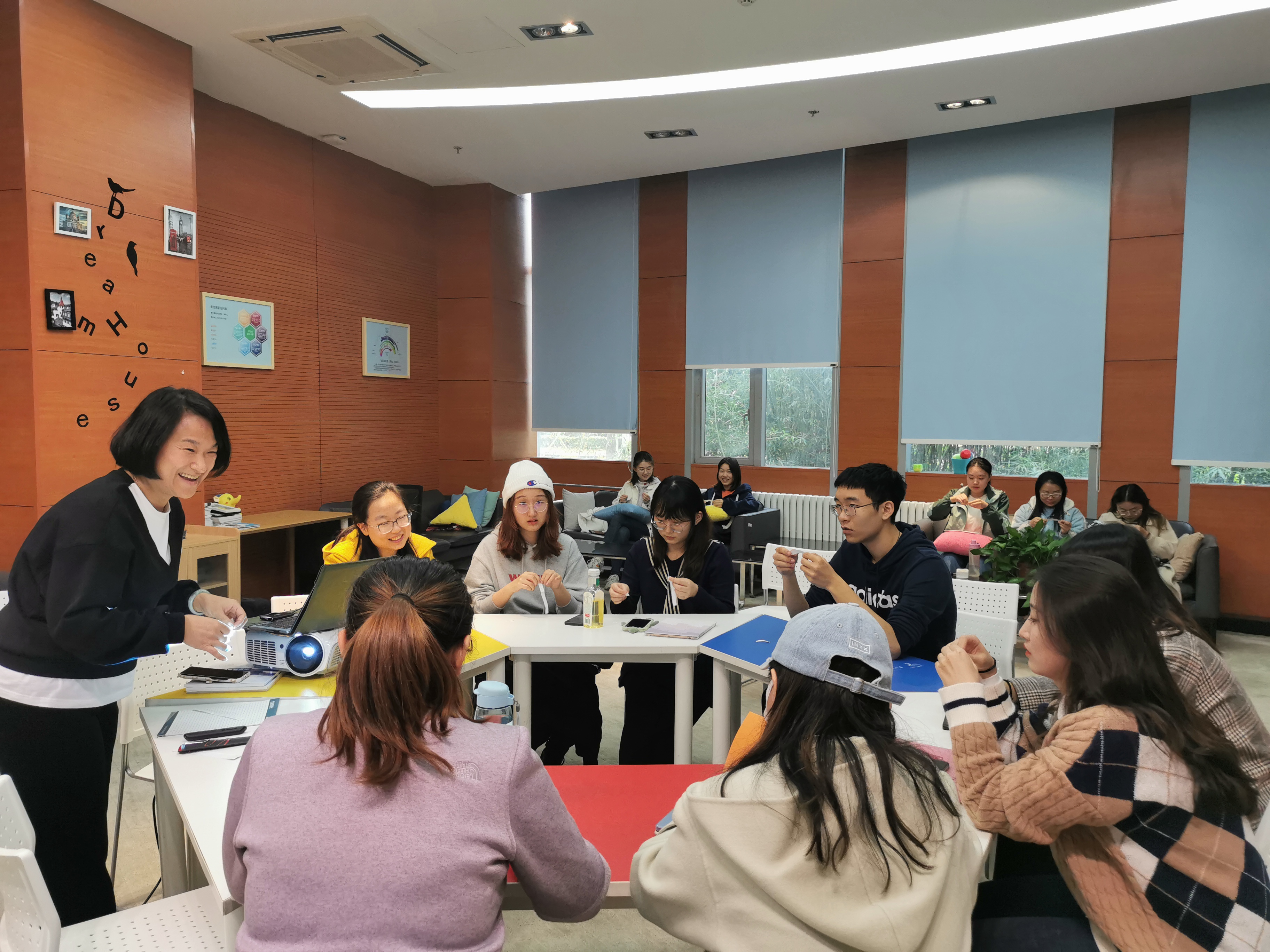 承办的 “女性求职训练营”活动在启真楼109开展。13名同学围坐一桌参与其中。主讲人由来自浙商银行西安分行人力资源部高级经理、国家二级心理咨询师、生涯教练、国际注册培训师张宁老师担任。