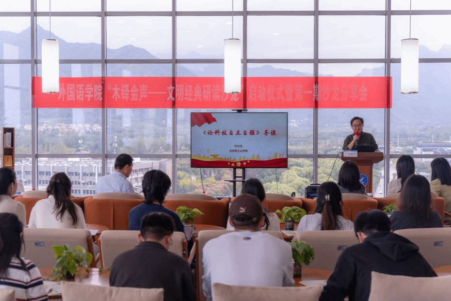 “木铎金声——文明经典研读沙龙”是学院着力打造的读书分享活动,旨在为研究生搭建一个高水平的学术交流平台,营造浓厚的经典阅读氛围。