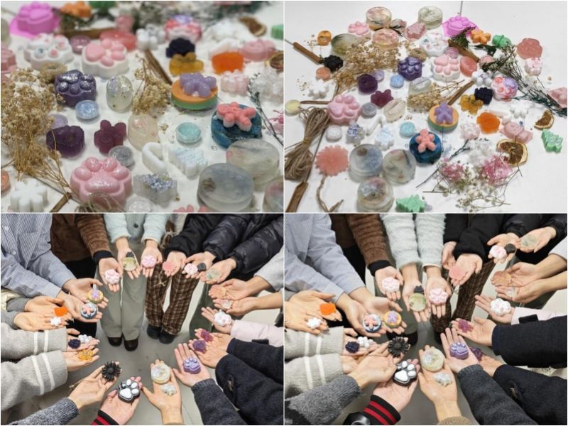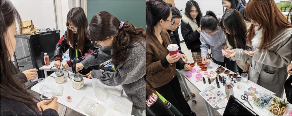 活动筹备阶段,学院研究生会精心准备了天然皂基、植物精油、安全色素与多种造型模具,并设置操作区、分享区与展示区,营造出温馨、安全的创作环境。活动开始前,工作人员详细讲解材料特性与操作规范,引导同学们共同约定“专注当下、安全第一、享受过程”,为心灵之旅拉开序幕。